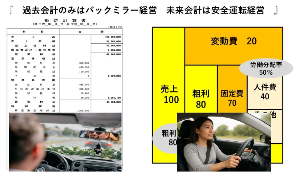 過去会計はバックミラー経営! 未来会計は安全運転経営?