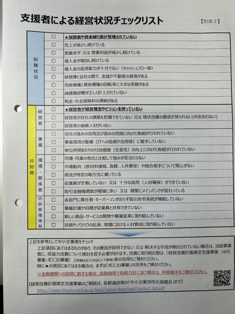 1コでも☑が付いたら経営改善計画の策定を推奨